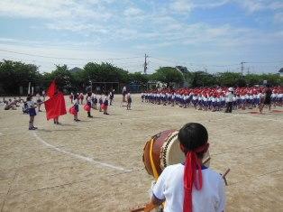 昨日は雨のため体育館での練習だった応援合戦の練習を今日は、校庭で行いました。