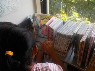 1年生も早く読みたくて・・・、どの本にしようか迷っているようです。