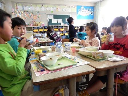 1年生も美味しそうに食べていました。6年後は、心身共に大きく成長していることでしょう。