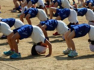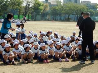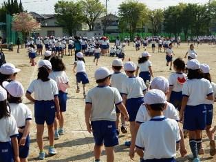 次の時間は、1年生全員が校庭に出て、体育の授業です。