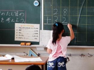 2年生は算数の授業で、2桁の数同士のたし算を筆算で計算