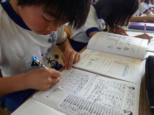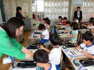 書き方などを学習しています。初任者指導の先生も一緒に指導