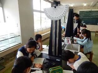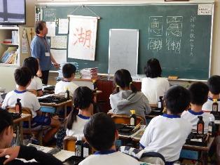 6年生は書写の授業で、これから「湖」の字を毛筆で書きます。