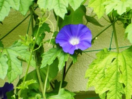 ゴーヤに混じってアサガオも2階まで伸びています。