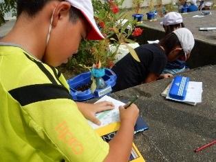 3年生は理科の授業で、育てているホウセンカの観察です。