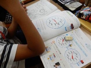 3年生は算数の授業で、はかりでで重さを量る学習です。