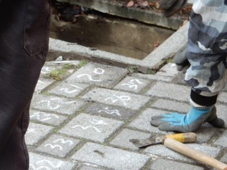 校門にある雨水マス周辺の土砂が、水の流れでなくなっていて凹んでいました。
