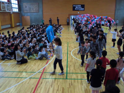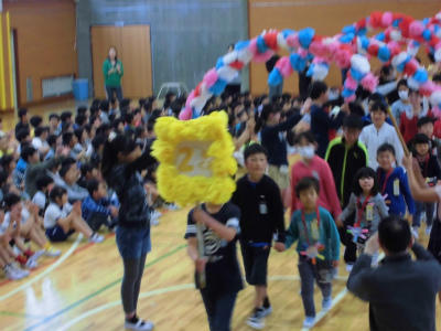 会も終わり、6年生と手を繋いで一緒に退場しました。