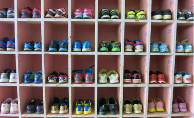 子どもたちは、計画委員会からの提案を受けて、くつそろえにチャレンジしています。