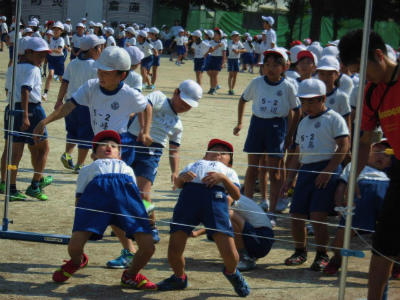 準備運動を丁寧に行ってから、それぞれの学年の運動に入ります。