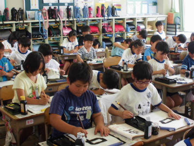 4年生:書写(習字)、「虫」を集中して書いていました。