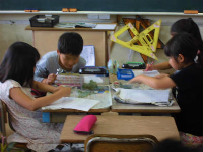 3年生:キャベツの葉っぱから、幼虫を見つけ出し、観察していました。ルーペでじっくりとみていました。