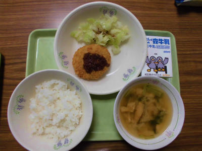 ごはん 牛乳 大豆コロッケ ゆでキャベツ かんぴょうのみそ汁