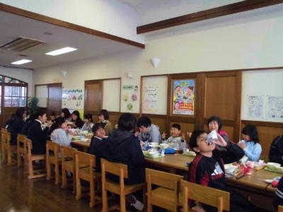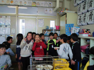 6・7・8組の子どもたちは、ランチルームで給食でした。先生もいつもよりたくさんいて、賑な給食でした。チョコレートプリンもいただきました。