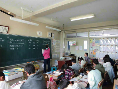 算数の問題です。先生が「なぜそうなるの?」「こうじゃないのかな?」問いながら学習を進めています。