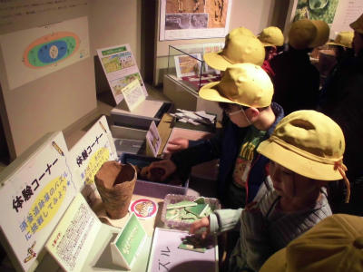 資料館の人に説明を伺っています。昔使っていた道具が沢山あります。