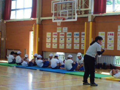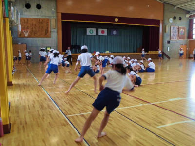 埼玉県地方に震度5強の強い地震が発生したことを想定し、第1次動作(姿勢を低くして、頭を守る)と校庭までの避難経路の確認を行いました。本校の避難訓練は、短い時間で、月に1回程度行うことが特色です。