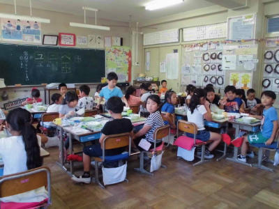 朝は読書活動から始まりました。PTAの皆様のご協力により、低学年児童への読み聞かせや本の修繕も行っていただきました。