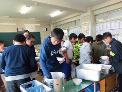ごはん、牛乳、天ぷら(ちくわ かぼちゃ)春菊のお浸しゆず風味 みそ汁