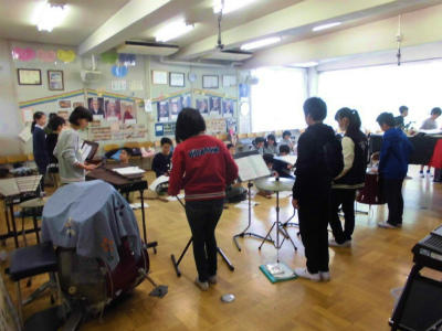 6年音楽:パートごとに楽器の演奏練習をしています。