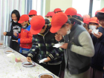 工場を見学した後、コアラのマーチとパイの実の試食をしました。
