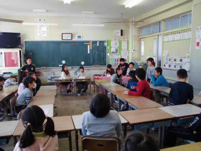 1年生 もうすぐ幼稚園や保育園の友だちを招待して、学校のことを教える学習があります。どんな紹介をしようか、役割はどうしようか…相談中です。