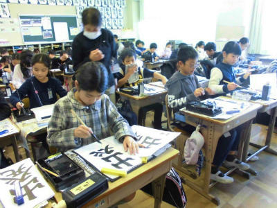 4年 書写 :『出発』をていねいに書いていました。