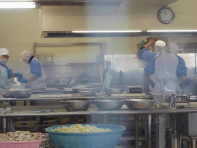 給食室の様子です。もうすぐできあがるのでしょうか…