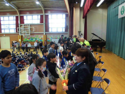 代表の子どもたちが、手紙と花束をお渡しして、感謝の気持ちを伝えました。