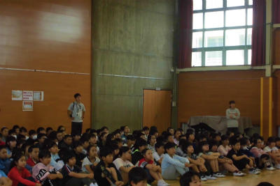 水泳学習ができる準備が整ってまいりました。きょうは、運動委員会児童が中心となって、プールに入るときの約束を確認することができました。
