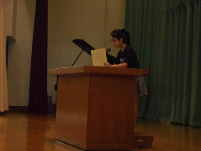 表彰です。市内陸上大会での活躍、校内・市内硬筆展での活躍を表彰しました。