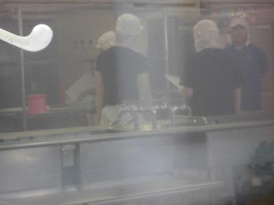 風雨の強い中、早い時刻に学校に到着した調理員さんです。いつも通りの時間から給食をつくり始めてくださいました。ありがとうございました。