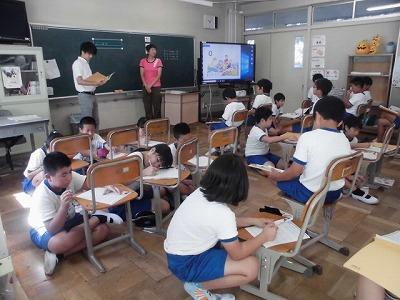 きょうは二人の英語専門の先生から教えていただきました。英語を書く活動も行っています。