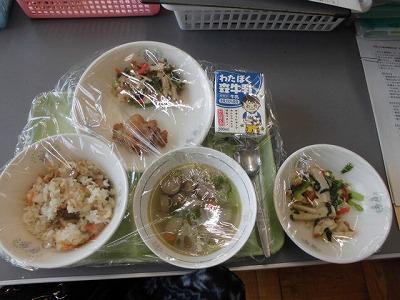 本日の給食は、冬の炊き込みぶりご飯、牛乳、鶏肉のゆず焼き、ピーマンとちくわのきんぴら、冬の野菜スープでした。アレルギーはピーマンとちくわのきんぴらのゴマ抜きです。