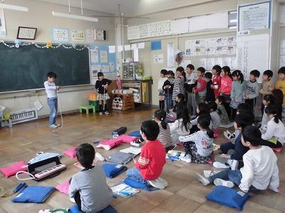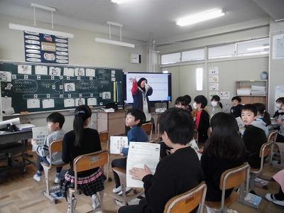 4年生の英語の授業は楽しく展開していました。道案内を英語でやりました。