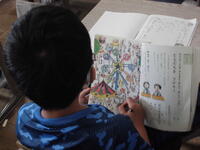 今日も意欲をもって学習に取り組む子どもたち。担任の話をよく聞く、ひらがなの学習、算数プリント、音読、埼玉県の学習、自分の考えを書く、友だちと話し合う、自分の考えを発表する、図工の制作、バスケットや鉄棒の学習など。