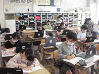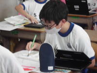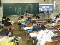 登校不安の子どもたちに対応するためオンライン授業実施しています。学習内容によっては双方向の授業を少しずつ取り入れています。画面越しに発言する子に教室の子どもたちが拍手する場面を見かけます。いいですね。