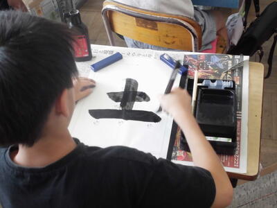 3年生では毛筆の学習です。硬筆が終わり、本格的に毛筆に取り組んでいます。