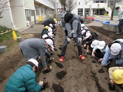 5年生が来年度の理科の実験に使うジャガイモを植えました。