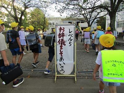 生活安全委員会のこどもたちが行っているあいさつ運動、5月から始めたあいさつレベルも今月からレベル5になりました。お辞儀をしてあいさつができることを目指します。