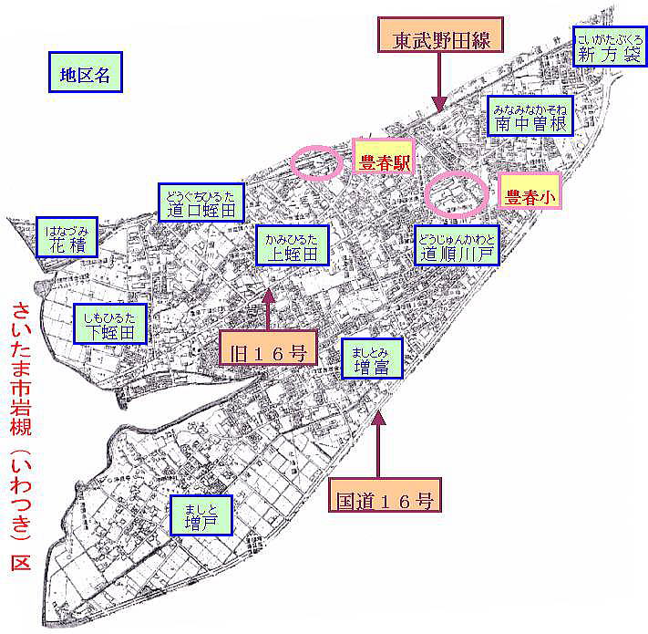 | あゆみ | 豊春小学校は、歴史の古い学校です。創立は明治6年。花積学校(花積東西寺)と谷原学校(上谷原の中村氏旧屋)がその前身です。 明治19年の小学校令施行の際、この2校が廃され増富学校となり福蔵院が校舎に充てられました。明治23年10月15日には、豊春尋常小学校と改称され、この日が開校記念日と定められました。その後、大正3年には高等科を併置して豊春尋常高等小学校と改称されました。さらに、昭和21年に豊春村立豊春小学校、昭和29年、市制により春日部市立豊春小学校となり現在に至っています。児童数は、昭和40年頃から急激に増加し、昭和52年には1486名・37学級となり、同年立野小学校へ、翌53年には、宮川小学校へ一部を分離しました。その後、昭和57年には、1273名・31学級となりましたが、それをピークに児童数は徐々に減少し、現在では550名前後となっています。 本校は、春日部市の西部に位置しています。現在の学区は、岩槻市に隣接し東武野田線と国道16号線に挟まれた、東西に細長い地域で、住宅地、商店街、農村地帯を合わせ持っています。父母や祖父母が本校の出身であるという児童もいますが、最近では、一戸建て、アパート、マンションなどの新しい住宅の建設が進み、そこから通う児童が増加してきました。 |