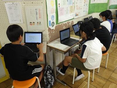 体育館で工事が始まっているため、始業式はオンラインで行いました。