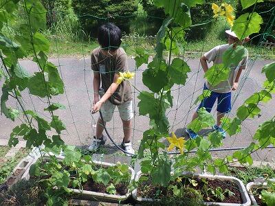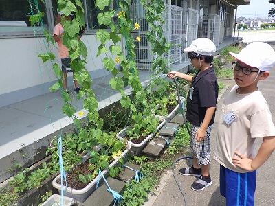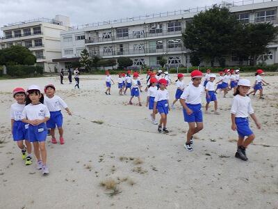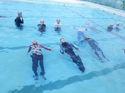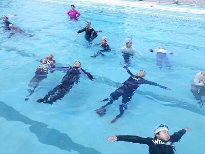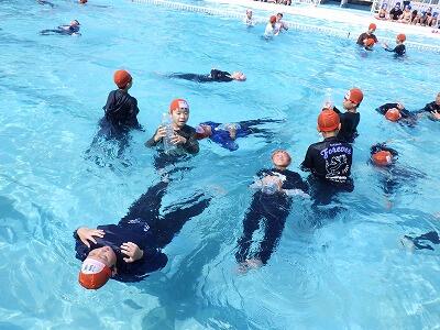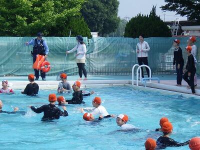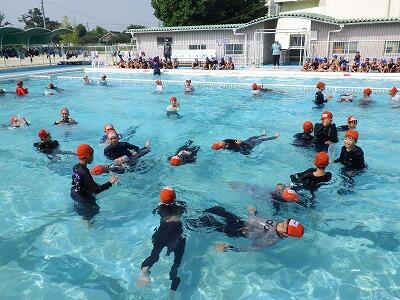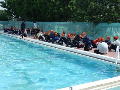 暑さ対策のため、予定の時間を早めて水泳学習を行いました。