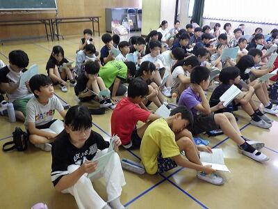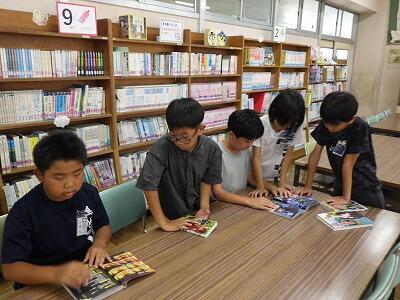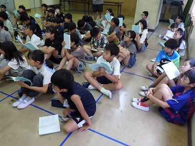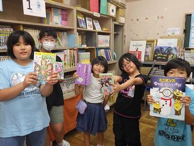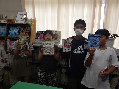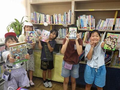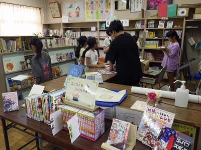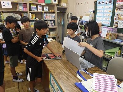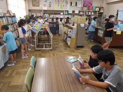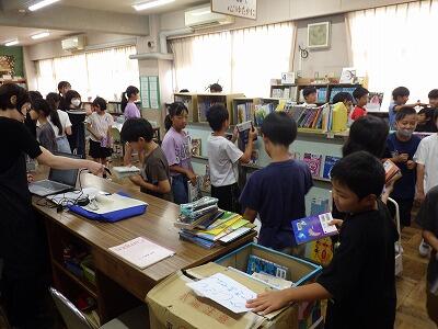 暑さで校庭で遊べなくなったこともあり、たくさんの児童が本を借りにきていました。