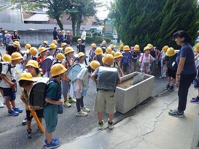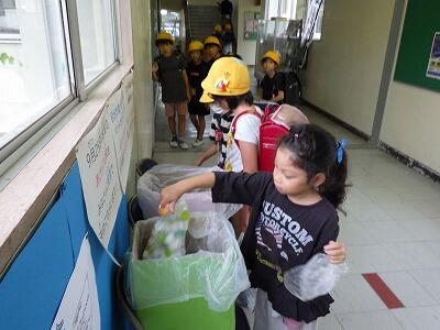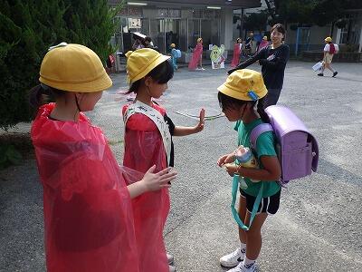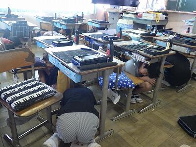 3年生の教室でも、地震発生時の避難動作が自然にできていました。