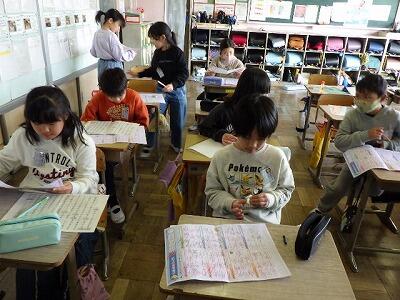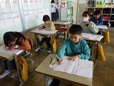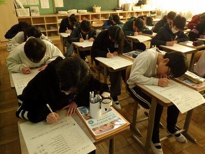 小学校生活最後の作文を丁寧に仕上げていきます。