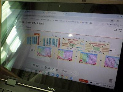 デジタル教科書の動画(東京大空襲を体験した方の話)も視聴します。