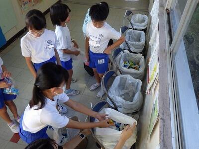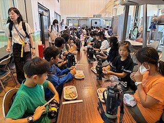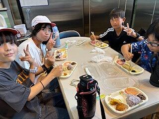 林間学校の食事後の片付けを練習するため、グループごとに食べていたのです。