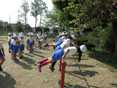 今日のさわやかタイムは、学年ごとに、ボール投げ、立ち幅跳び、鉄棒を行いました。ボール投げでは、目当ての距離にネットを用意し、そこを越えられるように力いっぱい投げています。鉄棒も立ち幅跳びも目当てを持って、子供たちは取り組んでいました。6月には、体力テストも予定されています。さわやかタイムの成果が発揮させることを期待しています。