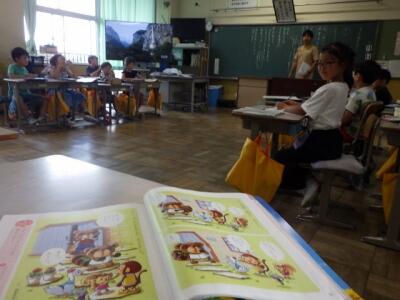1年生の教室から教科書を音読する声が聞こえてきました。